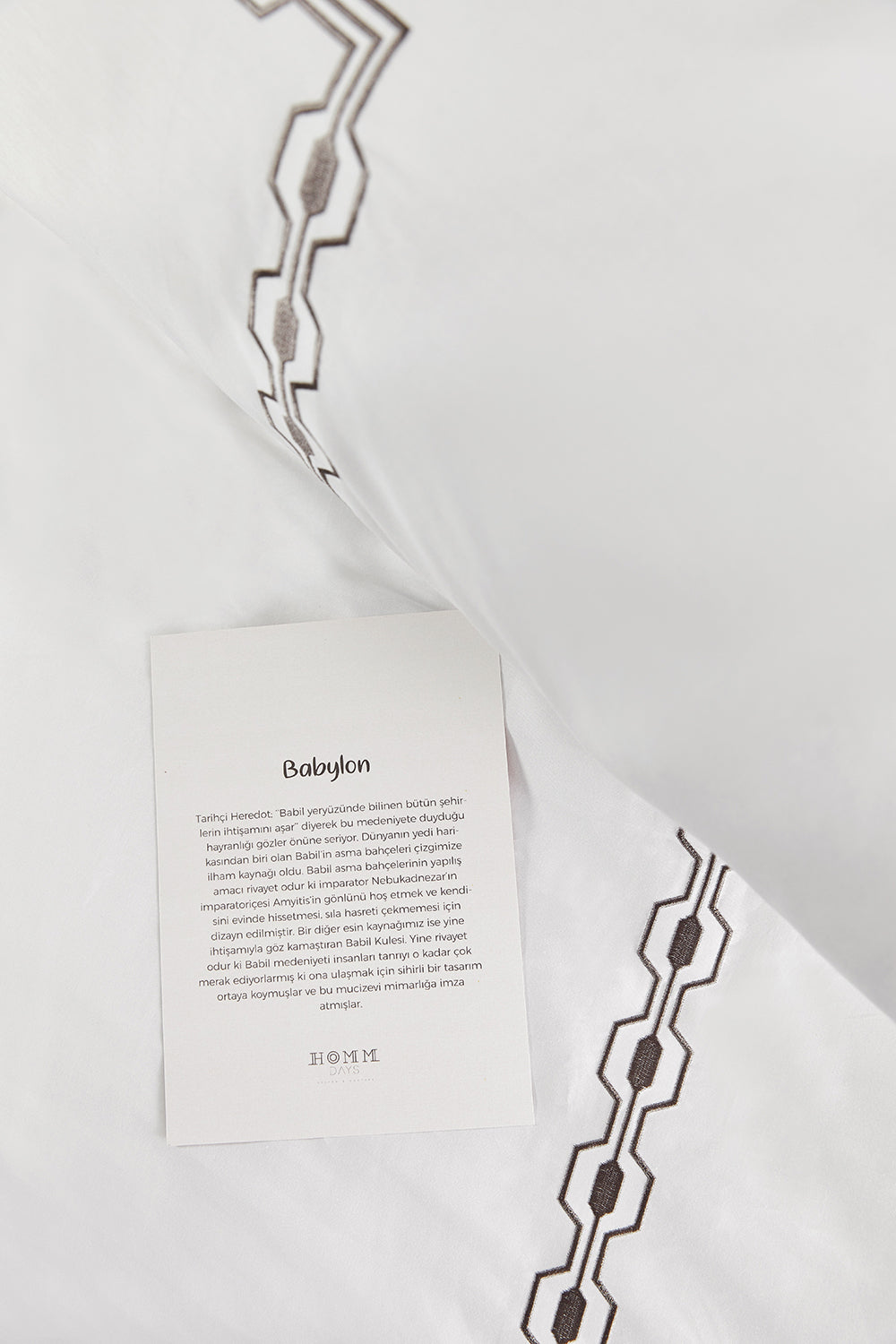 Historian Heredotus presents his admiraton to Babylonia by saying that the flamboyance of Babylonia surpasses splendour of all the cities on Earth. Being one of the wonders of the world, The Hanging Gardens of Babylonia had inspired our design of our productions. The goal to construct The Hanging Gardens of Babylonia was said that emperor Nebukadnezar got the gardens built to make his homesick empress, Amyitis, happy and feel herself at home. Also, tales told us about the curiosity of Babylonians so much so that they built the talismanic Tower of Babel to be able to reach the Divine Authority, God. Hence, a miraculous and beautiful architecture was created with their effort. Indulge in the luxury of 120 thread count sheets with the Babylon Bedlinen range from Homm Days. Exquisitely crafted in pure cotton sateen, the supremely soft collection creates the perfect setting for a restful night’s sleep.