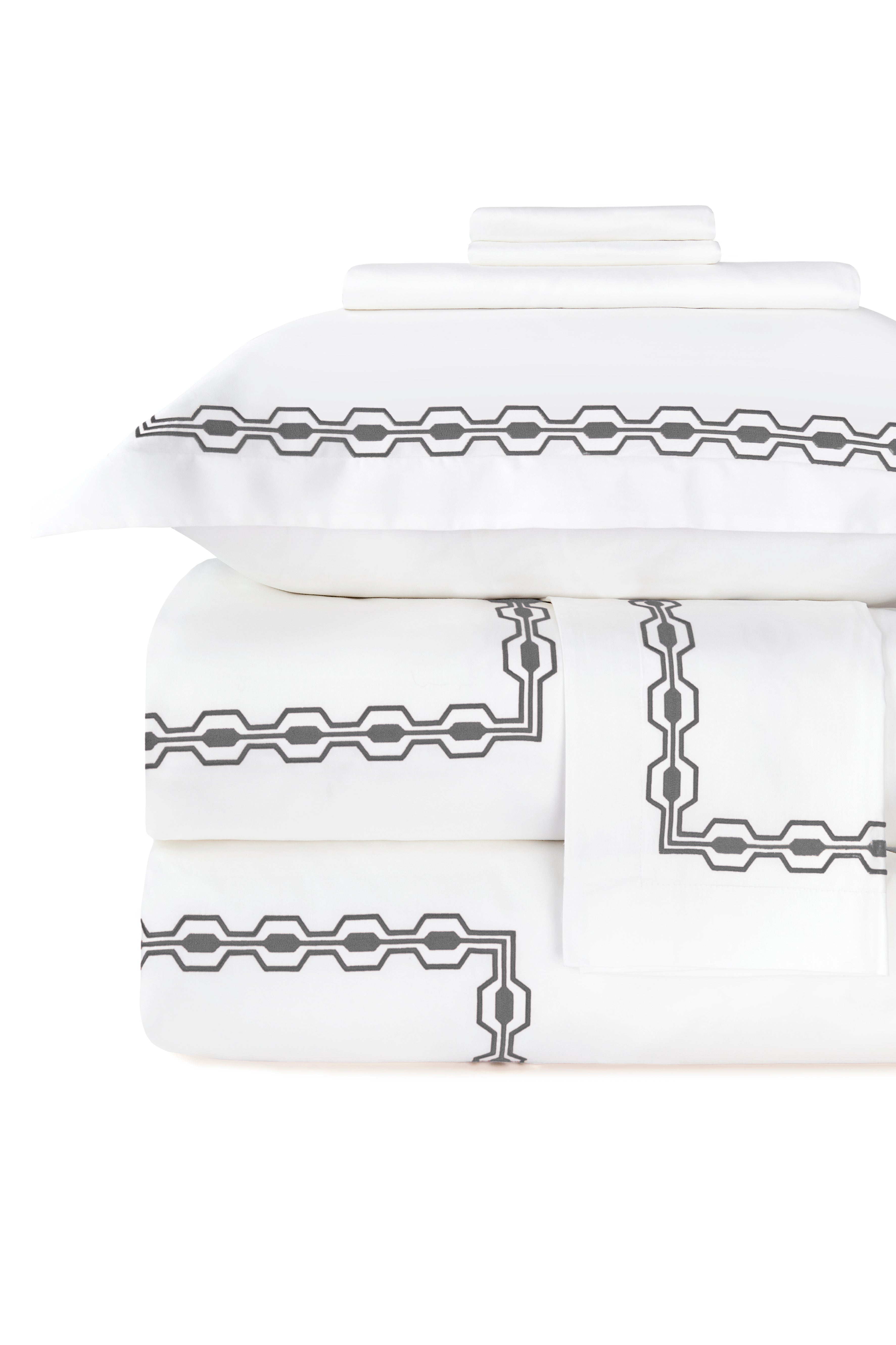 Includes duvet cover, one pair of Oxford pillowcases and flat bottom sheet.