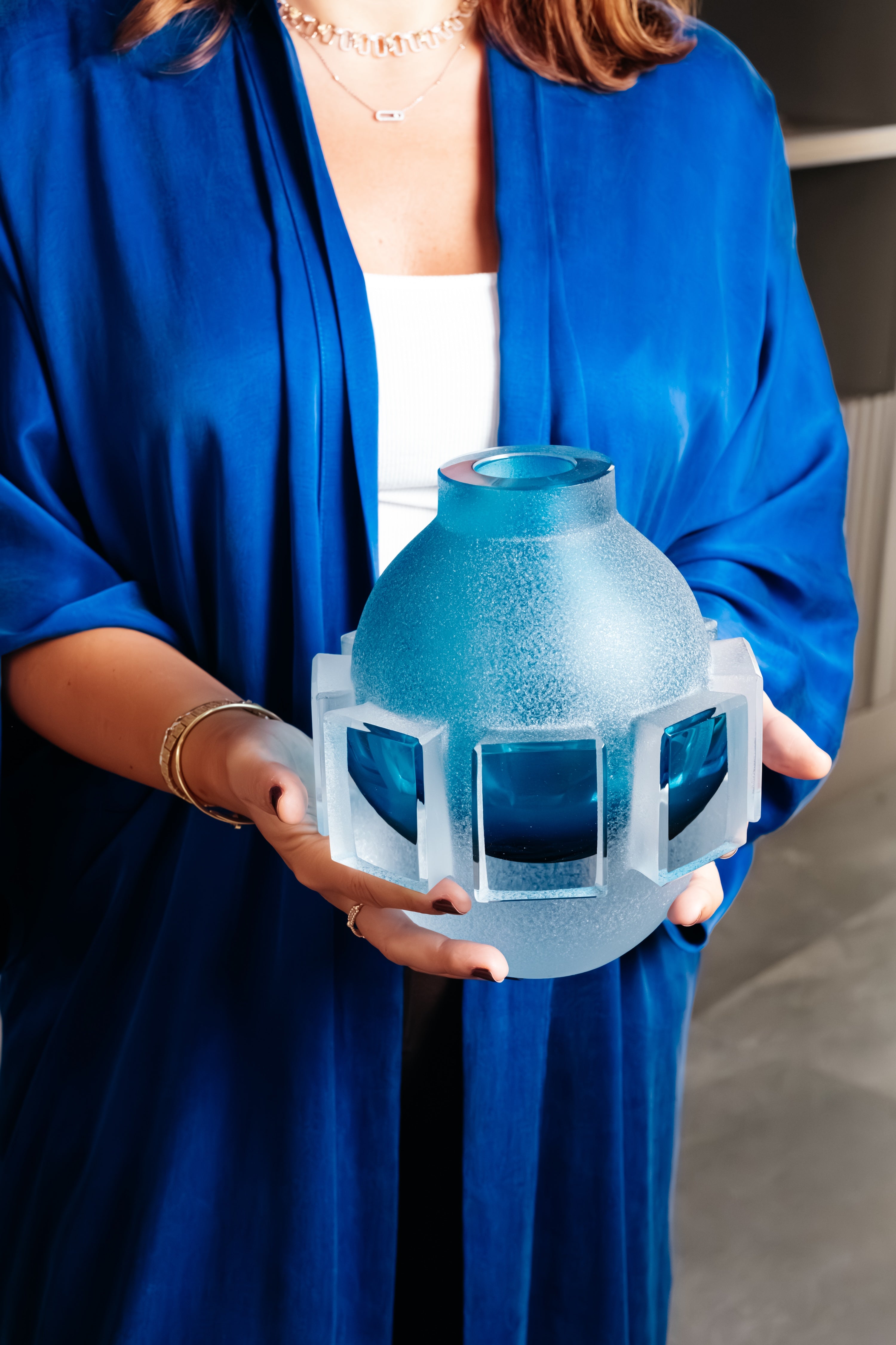 This one-piece glass product, entirely handmade, is a unique design that combines elegance and craftsmanship. Every detail reflects handcrafted workmanship, and every form exudes originality.