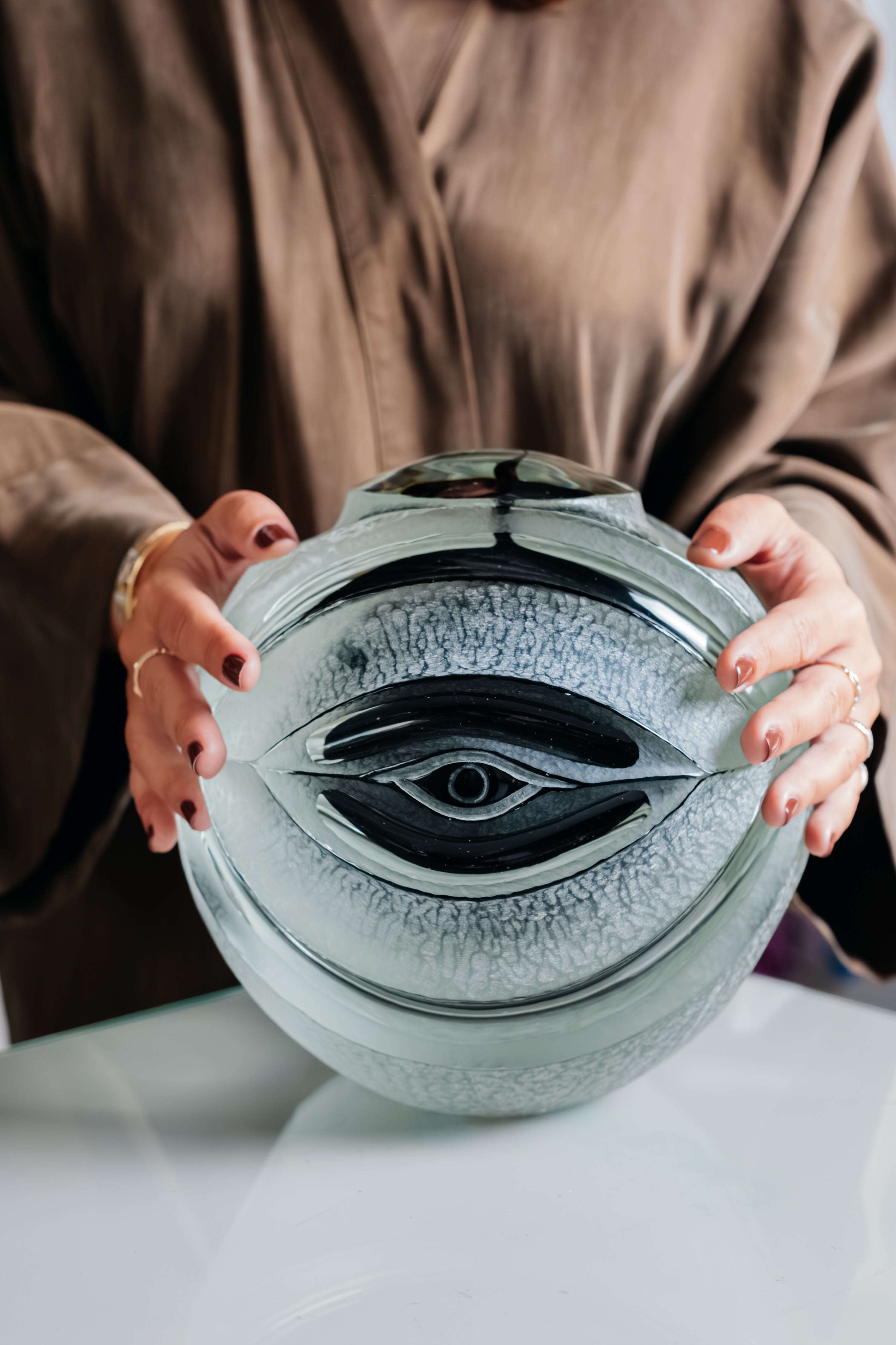 This one-piece glass product, entirely handmade, is a unique design that combines elegance and craftsmanship. Every detail reflects handcrafted workmanship, and every form exudes originality.
